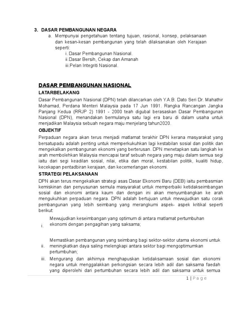 Nota Dasar Pembangunan Negara Pdf
