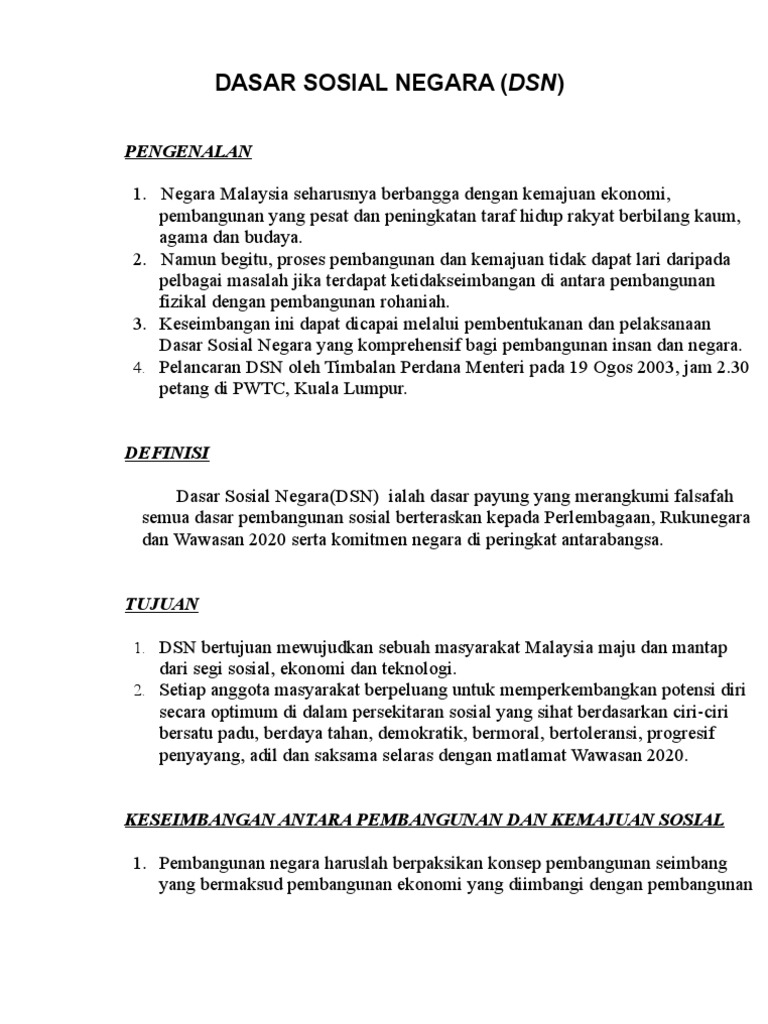 Dasar Pembangunan Sosial Di Malaysia